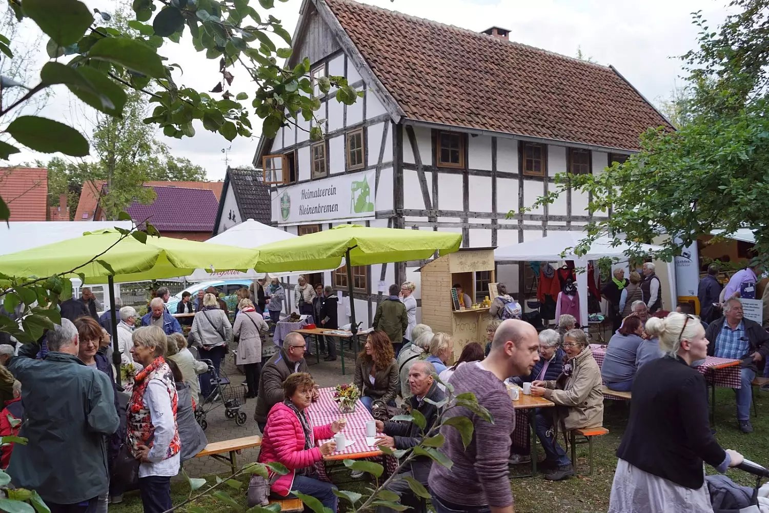 Diese Veranstaltung dient auch zur Vorbereitung der Jahreshauptversammlung im März. Dann entscheidet sich die Zukunft des Vereins. Wichtig ist der Fortbestand des Heimatvereins auch für den Erhalt der Dorfwerkstatt mit ihren vielfältigen Angeboten, die der Verein initiiert hat. „Wenn das Ressort-Modell nicht zum Tragen käme, müsste man sich Sorgen machen. Ohne Heimatverein gehen in Kleinenbremen die Lichter aus. Dann finden die ganzen Feste nicht mehr statt“, sagt Norbert Gerntrup. „Wenn jetzt Jahreshauptversammlung wäre, müsste man den Verein auflösen. Es gäbe keinen 1. Vorsitzenden, keinen 2. Vorsitzenden und keinen Schriftführer.“ Der Heimatverein Kleinenbremen (fast 250 Mitglieder) kämpft gegen Überalterung und wirbt um neue Mitglieder zur Bewältigung der vielfältigen Aufgaben. „Wenn ich sehe, dass bei Festen die über 70-Jährigen Bierzelt-Garnituren schleppen müssen - das kann nicht funktionieren“, meint Mirka Halver. Walter Caselitz ist 80 Jahre alt und seit 30 Jahren Vorsitzender. Er hat seinen Rücktritt aus gesundheitlichen Gründen angekündigt. Caselitz will künftig aber als Ratgeber zur Verfügung stehen und zuarbeiten. Veranstaltungen wie der Kleinenbremer Dorfmarkt wären ohne die Unterstützung durch den Heimatverein in Gefahr. - © Archivfoto: Stefan Lyrath In Kleinenbremen gilt der Heimatverein als Motor des Dorfes. Die Heimatfreunde haben jeweils zwei Mühlen und Backhäuser saniert und durch eine neue Nutzung mit Leben gefüllt. Zurzeit engagieren sie sich beim Umbau des früheren Müllerhauses von Hartings Wassermühle zu einem Dorfcafé und unterstützen damit den Kreis-Mühlenverein, dem das Ensemble gehört. Hinzu kommen diverse Veranstaltungen wie etwa Mühlentage. Am Dorfmarkt oder dem Großflohmarkt „Lütgenbremer Klüngel“ beteiligt sich der Heimatverein mit Mahl- und Backtagen. |