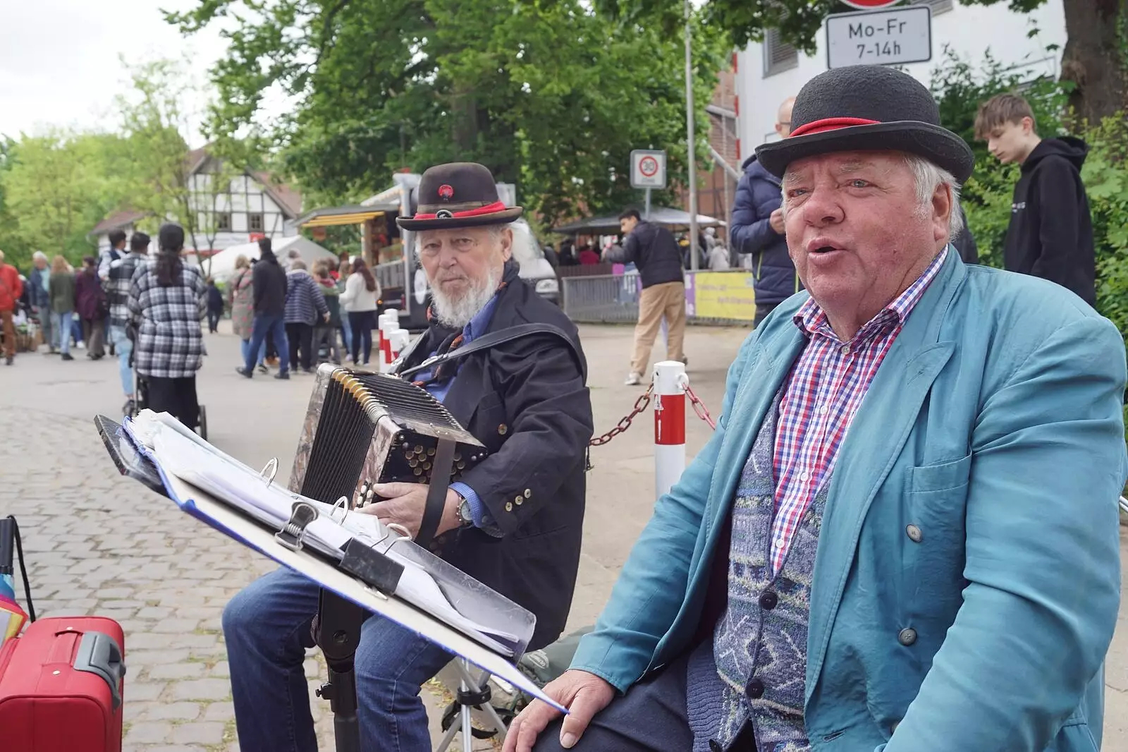Straßenmusik macht das Duo „Willi & Ich“. - © Stefan Lyrath Auch in diesem Jahr haben sich die Heimatfreunde mit einem Mahl- und Backtag beteiligt. Die Mönkhoffsche Wassermühle und das Meierhof-Backhaus sind geöffnet. Nach sechs Stunden vermeldet Ulrike Müller: „Es ist fast alles weg.“ Das heißt: 40 Bleche mit Butterkuchen, 30 große und 300 kleine Brote, haufenweise belegte Brötchen. „Das ist noch mehr als in den letzten Jahren“, so Ulrike Müller. Die Hobby-Müller haben gut zu tun Zum Glück lädt außerdem eine Caféteria in den Räumen der Grundschulbetreuung ein. Burger gibt es bei der Jugendfeuerwehr Kleinenbremen-Wülpke. Am Grill steht zeitweise Jens Grabbe, der Wehrführer von ganz Porta. An den Bratwurst- und Getränkebuden herrscht ebenfalls Gedränge. Gut zu tun haben auch Walter Caselitz und Eckhard Bruß, zwei Hobby-Müller des Heimatvereins, die an diesem Sonntag im Einsatz sind. „Ich stelle immer wieder fest, dass die Menschen an alter Mühlentechnik und auch der Mühlenhistorie sehr interessiert sind“, freut sich Caselitz. Für Ehrenamtliche wie ihn ist das der schönste Lohn. Beim Heimatverein sind etwa 20 freiwillige Helfer im Einsatz, beim TuS Kleinenbremen rund 30. |